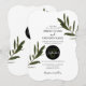 This design features olive leaves and branches. The beautiful greenery of the olive leaves compliment the elegant black modern circle shape encircling the wedding date. A perfect fusion of modern and chic with rustic olive colours. Olive green, black and white are a perfect match for a Mediterranean themed wedding. Unique wedding invitation design with modern elements. Matching wedding stationery items and other wedding invite formats are also available.