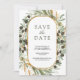 Amaze your guests with this elegant save the date featuring beautiful leaves and modern typography with QR Code for wedding website. Simply add your event details on this easy-to-use template and adorn this card with your favourite photos to make it a unique personalised one-of-a-kind save the date card.