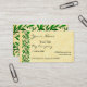 A custom business card with a simple yet elegant border of green olive branches laden with fruit and gently scrolling leaves on a faux parchment background.