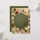 Embrace a warm, earthy aesthetic with this vintage-inspired botanical design. A sophisticated palette of deep olive green is complemented by painterly terracotta, burnt orange, and cream florals. Lush arrangements of anemone-style blossoms and delicate foliage create a rustic yet elegant atmosphere for your special day.