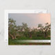 Olive tree grove at sunset bar postcard