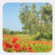 Photo sticker with an old olive tree in a poppy field full of vibrant red poppies in a landscape in Tuscany, Italy.