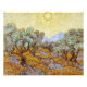 Olive Trees with yellow sky and sun. Vincent Willem van Gogh. Landscape in warm yellow tones. Large garden with large trees. Mountains in the background. There is a big bright sun in the sky. Reproduction of famous works of art images in the public domain.