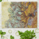 Olive Trees with yellow sky and sun. Vincent Willem van Gogh. Landscape in warm yellow tones. Large garden with large trees. Mountains in the background. There is a big bright sun in the sky. Reproduction of famous works of art images in the public domain.