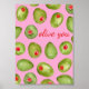 This art print features a pattern of watercolor stuffed olives with the caption "olive you".