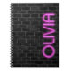 OLIVIA name in glowing pink marquee neon lights on city brick wall.