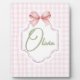 Olivia Personalized Pink Bow & Gingham Print Plaque