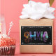 A little bit of magic for the Olivia in your life! The name Olivia is reflected in still water, with floating foil hexagons. The letters look as if they're carved from crackled ice or crystal. This image is a photograph of handmade letters, which change randomly, producing unique patterns and colours of light. If you can't find a name you want, please get in touch, and I'll put it on my list. I'm also happy to make multi word designs. Please see NamesInLights.co.uk for larger examples of the standard of photography on these products. Flourishes / swirls by manamedia/Vecteezy.com. All of my designs can be customised / personalised using the "Customise it" button on the product page.