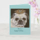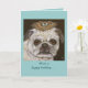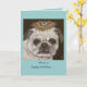 Pug with nest hat on funny birthday card. Delete or change text for no extra cost