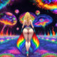 In a mesmerising exploration of the mystical realm of psychedelia, this captivating art piece delves into the intricate connection between the human form and the complex world of DMT-induced experiences. The central figure, a stunning woman with gracefully curvy hips, serves as an embodiment of the universal feminine energy and the power of sensuality. She is poised to reveal the secrets of cortical travelling waves, a phenomenon that is intimately tied to the mind-altering effects of DMT. The artwork's vivid colours and swirling patterns evoke a sense of transcendence, inviting viewers to embark on a journey of self-discovery and heightened consciousness. The subtle interplay between the ethereal landscape and the woman's mesmerising aura creates an immersive experience that transports the audience into an alternate reality, where the boundaries between the physical and the metaphysical are blurred. By capturing the essence of a DMT-like experience, this extraordinary piece not only highlights the transformative potential of psychedelic substances but also underscores the profound impact of art on our perception of reality. It serves as a reminder that the pursuit of knowledge and understanding is a continuous journey, one that can be enriched by the exploration of altered states of consciousness and the boundless creativity of the human mind.