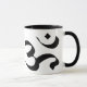 White and black 11 oz. combo mug with the symbol Om, the sacred syllable that is chanted in Hindu and Buddhist prayers and mantras.
