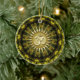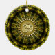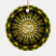 Golden OM Sanskrit symbol, customisable ceramic ornament in gold on organic earth timber geometric cross pattern. Makes a great personalised gift idea ~ keepsake gift ~ decorate and hang this positive happy energy ornament in your home, Yoga studio, bedroom, hang this ornament in your car, van or office!