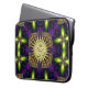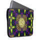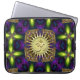 Spiritual New Age customisable laptop or Notebook Sleeve : Fractal Geometric tapestry pattern in gorgeous purple, green, blue colours with a golden Om / Aum symbol in the centre.