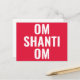 This postcard features the transliteration of the Sanskrit mantra to invoke peace - OM SHANTI OM - In white on a red background.