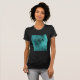 The symbol for OM, the sound that is said to contain all sounds, on a teal background, on a black t-shirt.