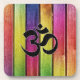 Om sign on multicolor wood coaster
