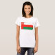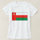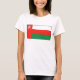 The front of this t-shirt boldly displays the Omani flag with its distinctive white motif in red vertical next to white, red and green horizontals. This is matched at the back by an attractive map of Oman.