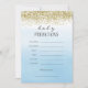 Baby shower prediction card with faux gold glitter design and ombre blue watercolor background.