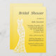 A beautiful vintage lace dress accents this ombre bridal shower invitation, on a buttercup yellow background.