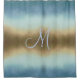 On this stylish shower curtain is a soft muted blue and brown pastel design where in the centre you can personalise it with a letter creating chic modern trendy vibes for any bathroom decor.