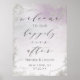 Ombre Lavender Purple Silver Foil Frosted Watercolor Wedding Design with hand painted watercolor wash fading pastel light purple background texture. A Chic and Modern Look for a spring or summer wedding, with soft pastel colour palette : lilac lavender purple, and silver faux foil veins and details, and a modern trendy brush Script lettering Font - Personalised Wedding Reception Welcome to our Happily Ever After Sign!