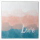 A graceful ombre gradient pattern in a chic mosaic blue and coral pink. Personalise this subtle watercolor design by adding your own words to the text template, or keep the sentimental word: Love.