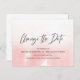 This design features a pink watercolor ombre background with "change the date"" in casual chic handwritten font. This template provides space for your names, date and location. On the reverse a handy space to hand address to the recipients, and a custom message.
