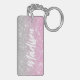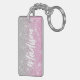 Ombre Pink Silver Glitter Calligraphy Name Key Ring