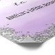 Poster print for welcome sign with faux silver glitter design and light purple ombre watercolor background.