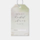 Ombre Spring Green Gold Foil Frosted Watercolor Wedding Design with hand painted watercolor wash fading pastel light green background texture. A Chic and Modern Look for a spring or summer wedding, with soft pastel colour palette : light pastel green, and gold faux foil veins and details, and a modern trendy brush Script lettering Font - Personalised Wedding Bridal Shower Display Gift Tags!