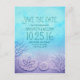 Ombre turquoise blue beach save the date postcards