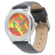 The leather band makes it seem like an “older kids” watch. Easy to read the time. Clear printing and image.