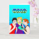 A hand drawn card for keeping in touch with friends and family. Got some gossip or big news you want to share? Well send this to your friend to say hi. Retro style Pop Art brightly coloured hand drawn card with three woman holding a retro phone. Big news, pregnancy announcement, getting married, engaged, graduated, new job, new home, divorce.