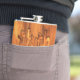 The flask itself is fine. It’s a cheap flask, obviously bought in bulk, however am prepared to overlook that. Given that it is a personalized item, I would have liked to have seen gift boxing instead of the generic packaging. Terrible printing, and/or quality. It’s a cheap, tacky vinyl. It is not cut straight and is also applied in a way that it is overhanging the bottom, causing the glue to catch on items and it will eventually roll and tear, damaging the wrap.