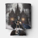 On an scary dark winternight, skeleton and the crow meet and it looks like they are having a conversation and the crow is talking to the skeleton
