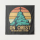 On Christ the Solid Rock I Stand, this Christian design features a Reto sunset look with a Christian Cross and Text Saying, "On Christ the Solid Rock I Stand".