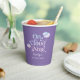 Dreamy 9th birthday party paper cup featuring illustration of pink, blue, and purple clouds with a typography text that says "on cloud nine."
