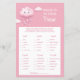 The "On Cloud Nine Pink What's in Your Purse Game" is a delightful addition to any girl baby shower party. This charming game is designed to bring laughter and excitement to the celebration while also being a great icebreaker for guests. With its pink colour scheme and cute cloud-themed design, it sets the perfect tone for a sweet and memorable event. The game is not only entertaining but also practical, encouraging guests to rummage through their purses for everyday items like lip balm, receipts, or even a lucky penny. The design of this game adds a touch of whimsy and fun to the baby shower festivities, making it a must-have for a joyful and girly party atmosphere.
