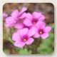 A cluster of violet wood-sorrel's pink flowers, with the clover-like leaves in the background.