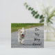 This delightful little white terrier small breed dog runs happily down the street with its tongue hanging out in excitement. This postcard design is a great way to let loved ones know you're happy to be returning back home.