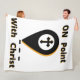 This fleece blanket has the words "On Point With Christ" in a bold print with black letters yellow shadow plus a cross inside of a map location sign with this faith based quote theme. This Blanket is made from 100% buttery soft and cosy polyester fleece with edge-to-edge vibrant full colour sublimation printing and double edge stitching with a off-white coloured back machine washable.