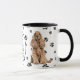 A beautiful blonde Cocker Spaniel looks out at you from two sides of this mug. The text between the two images says "On the 8th day, God created the COCKER SPANIEL and called it VERY GOOD". The dog images and the white oval banner containing the text fields are placed on a white background with black paw prints.