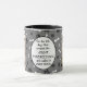 A beautiful white Great Pyrenees Dog looks out at you from two sides of this mug. The text between the two images says "On the 8th day, God created the Great Pyrenees Dog and called it VERY GOOD". The dog images and the white oval banner containing the text fields are placed on a dark grey background with black paw prints and white bones.