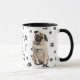 An adorable Pug Dog looks out at you from two sides of this mug. The text between the two images says "On the 8th day, God created the PUG and called it VERY GOOD". The dog images and the white oval banner containing the text fields are placed on a white background with black paw prints. Cute!