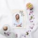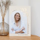 A modern and elegant class of 2022 graduation announcement design that frames your vertical or portrait-orientated photo in a rose gold foil-trimmed arch, with your graduate's name and school along the sides, and the graduation year at the upper left. Personalise the back with an additional photo and a personal message.