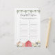 On the farm themed baby shower ABC's race game card features a watercolor farm animals illustration and watercolor greenery eucalyptus garland and elegant handwritten style font.