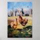 From an original oil painting by Brenda Thour of a chicken and rooster on a farm. Copyright by Brenda Thour 2005.
