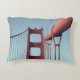 Looking up as I walked across the Golden Gate Bridge one sunny afternoon in San Francisco, California, one of its massive suspension cables loomed overhead. It stretches out of the upper right corner of the photograph to the top of an red-orange tower near the centre. The suspension cable on the left seems skinny in comparison as it meets the centre of the left edge of frame, the bridge's symmetry made askew by the perspective. Pairs of suspender ropes hang from the main cables, the ones on the left side of the bridge giving the clear blue sky a pinstripe effect in the lower left corner of the photo. Without the road in view, the geometry of the International Orange painted bridge is accentuated against the blue sky.