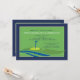 A contemporary design featuring a flag on the green with a bold green and blue background. Perfect for any golfer's special day.