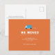 A fun illustrated moving announcement postcard. Let your family and friends know where you've moved to! The background colour on the front of the card is customisable.